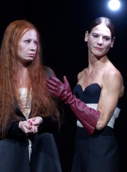 „Kušejs Sicht auf die blutige historische Beziehung zweier Königinnen ist durchdrungen von Männlichkeit, von nackter, stumm präsenter Männlichkeit. Knapp dreißig Männer bilden (v tom našem představení jich pár chybělo) in der schlichten Kuben-Bühne (Annette Murschetz) das lebendige Interieur des bildmächtigen Regiekonzeptes.“